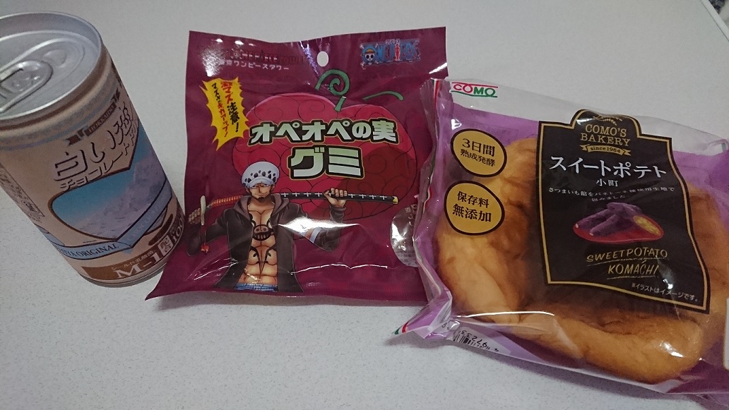 その帰り際、麦わらストアで欲しいものがたくさんある中なにを買おうか散々悩み、オペオペの実グミも一度は手に取り、でもやっぱりいいかなと思って棚に戻し。